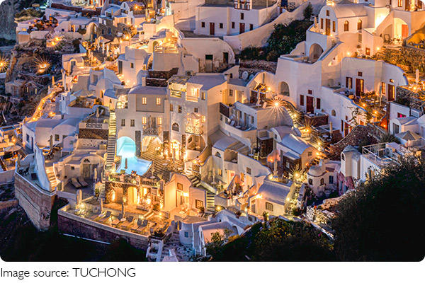 1. Luxurious villas perched on cliffs overlooking the Aegean Sea.