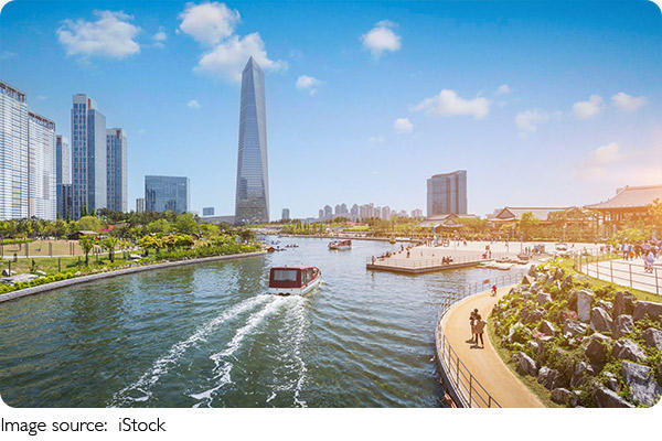 We invite you to explore this large urban park situated in the heart of Songdo International City, a rapidly growing smart city near Incheon. What makes it truly special is its unique seawater canal system, the first of its kind in Korea.