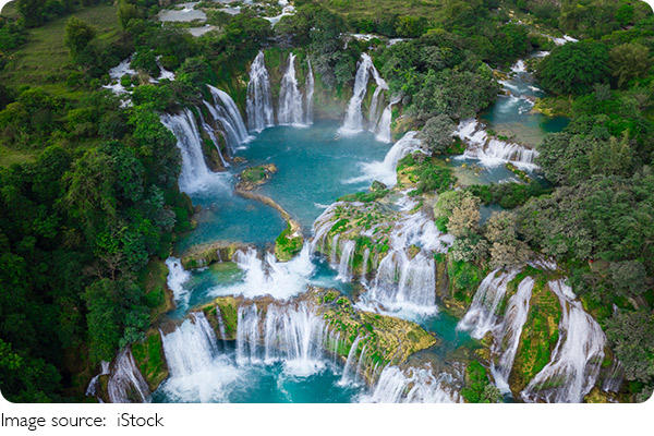 Known as 'Blue Water' in Spanish, Agua Azul owes its rich hues to limestone bedrock that filters sunlight into turquoise and emerald along each step of the rushing Xanil River.