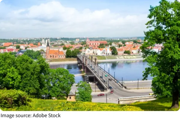 Day 2: Wander through Kaunas Old Town, visiting Kaunas Castle and admiring colorful streets. In the afternoon, stop by the Cathedral of St. Peter and Paul to see its Baroque-style details, then explore boutique shops and cafés before departure.