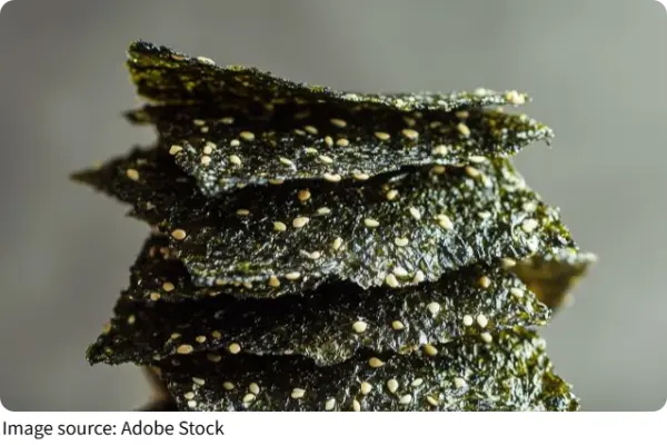 • Dried seaweed sheets (nori): 10 full sheets (approx. 7" x 8" each)