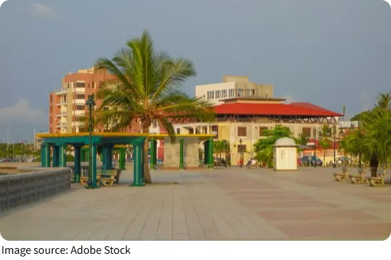 Bata Seafront – A landscaped promenade, public art, and a signature coastal tower create an easy evening circuit. Cafés and ice-cream stands dot the walkway. Taxis across town are usually US$2–4; sunset is prime time for families and joggers.