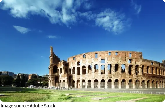 The Colosseum, also called the Flavian Amphitheatre, was built between 72 and 82 AD. This massive oval arena once held 50,000–80,000 spectators. It hosted naval reenactments, theatrical performances inspired by Roman mythology, and historical recreations.