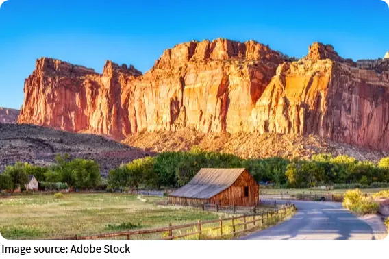 The park itself is open 24 hours a day, all year round. The main Visitor Center, located near the historic Fruita district, operates roughly 8:00 AM to 4:30 PM, with slight seasonal variations.