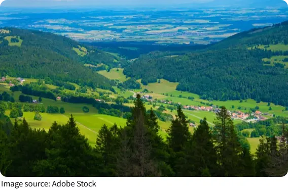 Dent de Vaulion is located in the canton of Vaud, Switzerland. Its coordinates are 46°41′05″N, 06°21′00″E. The mountain is part of the Jura range and rises 339 meters above the surrounding area. The town of Vallorbe, situated at the base, is our gateway to the mountain. Vallorbe is small but practical, offering restaurants, hotels, and transport options. From here, it’s easy to reach the trails, ski resort, and viewpoints without hassle.